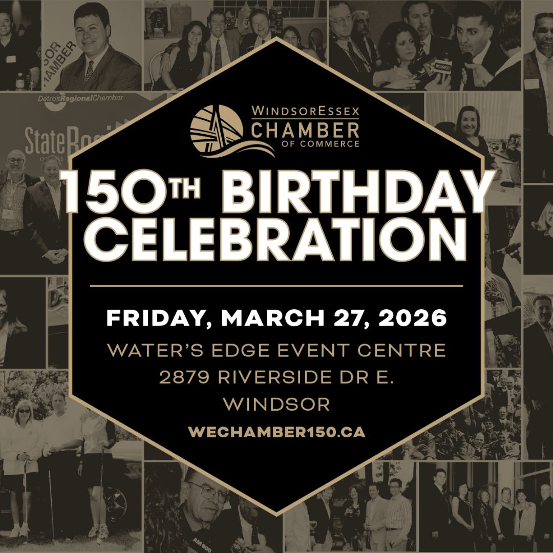 Join us for an unforgettable evening as the Windsor Essex Chamber of Commerce proudly celebrates 150 years of leadership, advocacy, and community impact—on International Whisky Day. This milestone anniversary party will bring together business leaders, community partners, local stakeholders and friends for a high-energy celebration featuring gourmet food stations and passed hors d’oeuvres, an open bar, live entertainment and DJ, immersive historic displays from the Chamber and Hiram Walker, a curated whisky tasting experience, a premium photo booth, special recognition of our 10 longest-standing members, and a commemorative keepsake gift for every guest.