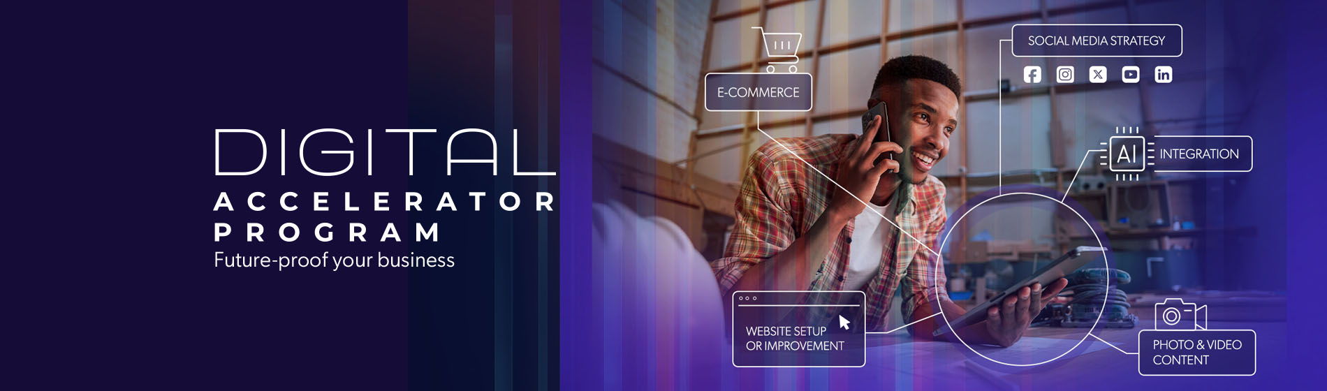 Whether you’re looking to strengthen your e-commerce capabilities, refine your social media strategy, integrate AI solutions, or elevate your digital content, the Digital Accelerator Program is designed to meet your business where it is. Participants are offered practical training, advisory support and a professional digital content package.